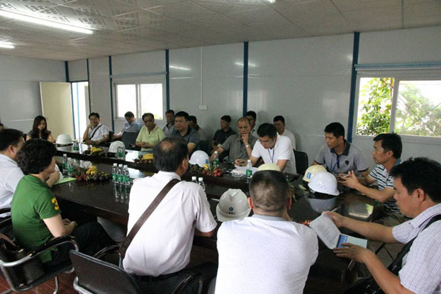 集团公司领导小组正在听取项目部安全生产管理工作汇报
