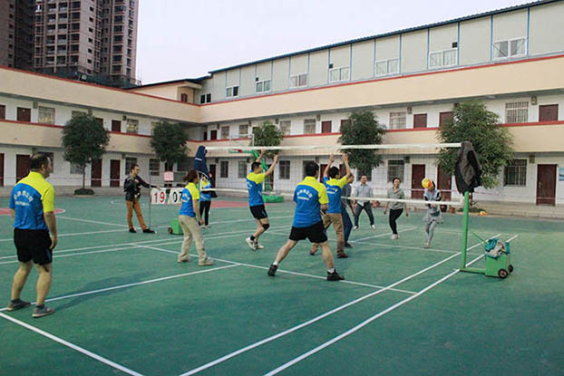 近年来,随着生产经营的不断发展,公司在扩大规模的同时,为了提高职工生活水平,丰富职工文化生活,不断加大对职工生活娱乐设施的投资力度。基地球场是公司文娱活动的主要场所,为了让运动员们更好地发挥水平,提高运动的安全性,公司经征求员工意见,将球场重新施工,改建塑胶球场。经过半个月的施工,新塑胶篮球场和排球场正式建成。新场地包括一个篮球场和两个排球场,颜色醒目,防滑性和弹性都很好,运动起来安全、舒适。