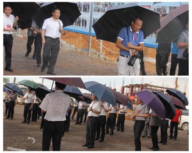 7月27日,自治区党委书记彭清华带领县委书记一行50多人冒雨到桂平市南木镇坝区弩滩村(大成塘)移民安置工程现场视察指导工作。集团公司副总经理侯立林、公司董事长、党委书记、总经理陈祖训及三分公司领导和项目负责人等迎接视察。