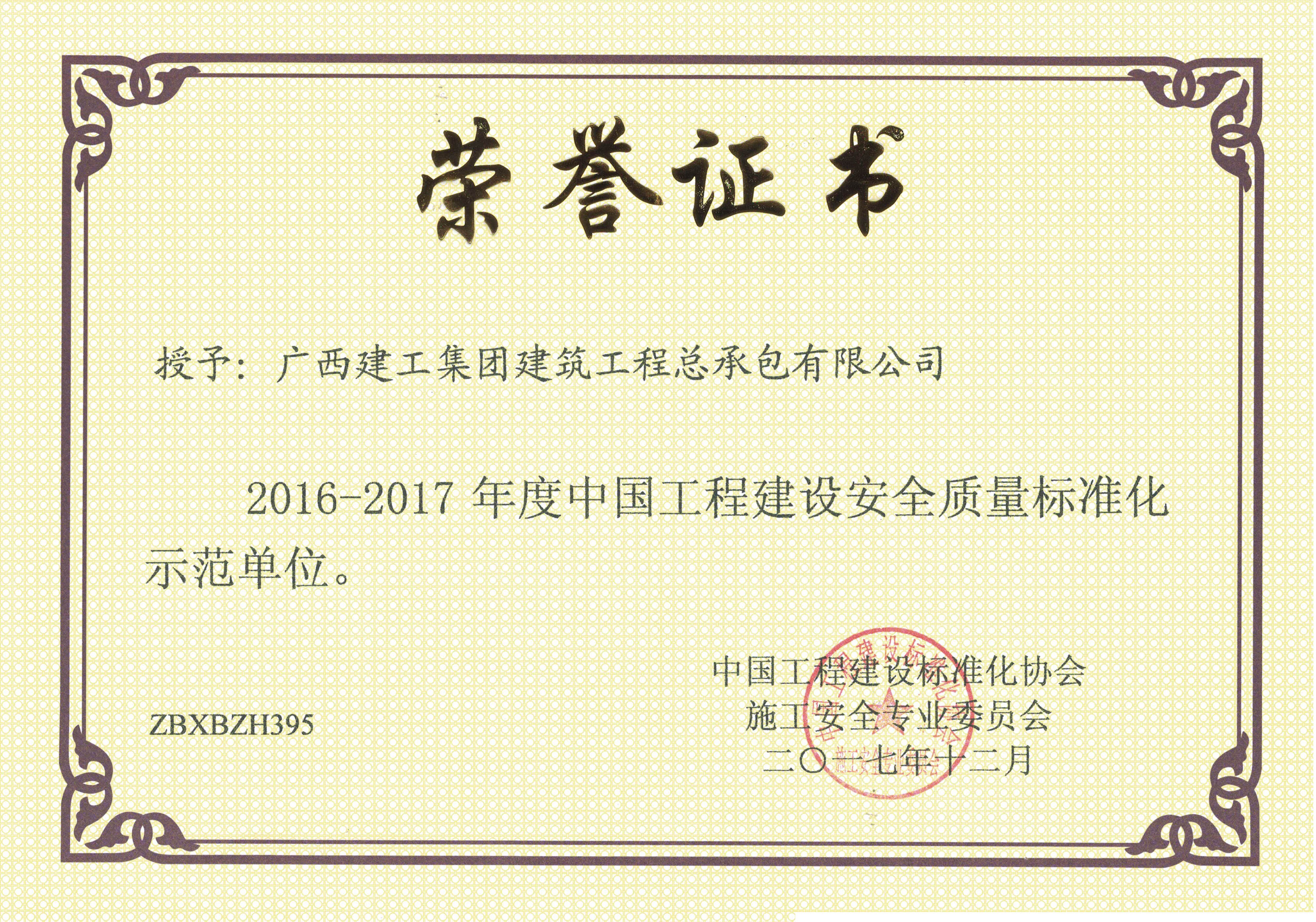 中国工程建设安全质量标准化示范单位
